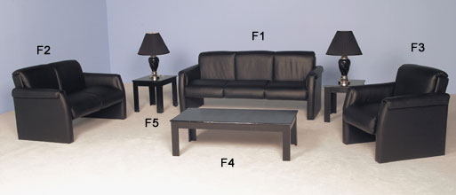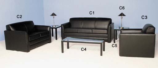 Black Leather Upholstery, Metallic Black Occasional Tables, Chrome Lamps