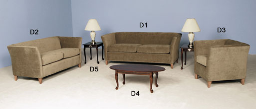 Champagne Velour Upholstery,Walnut Finish Occasional Tables, Beige Swirl Lamps