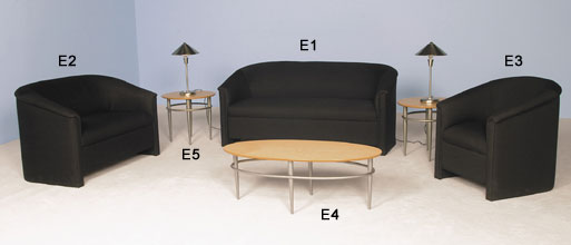 Onyx Fabric Upholstery, Nickel-Blond Occasional Tables, Chrome Lamps