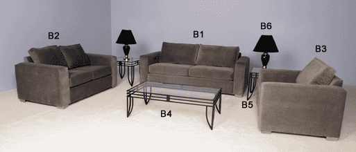 Grey Velour Upholstery, Satin Black Occasional Tables, Black Swirl Lamps